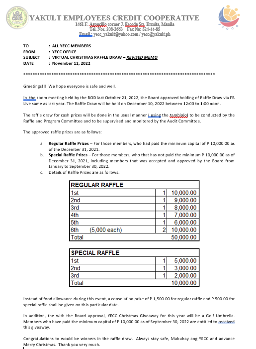 MEMO VIRTUAL CHRISTMAS RAFFLE DRAW